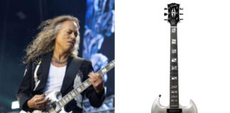 Kirk Hammett is auctioning his silver Gibson CEO4 SG from Black...