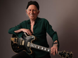 “This is my standard tuning six-string,” Richards tells Watt. “This is the other side of my thing. My six-string stuff has always been, you know, a great Gibson – that’s where I feel the most comfortable. And also with the sound. Put it through just about any amp, and it will sound the way you want it, because this has so much more room for expression.”