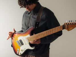 “I’m writing a lot of music and I’m playing a lot of music. I’m out on tour playing music that uses extended range instruments. So, seven and eight string guitars,” says the musician. “I wanted something that could bridge the gap between the two… Something that’s vintage looking – so S-style – and then has the extended range and some of the modern features of extended range guitars.”